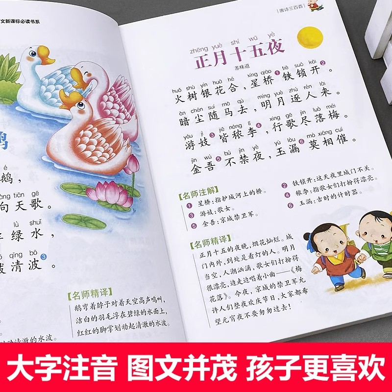 幼儿早教古诗词绘本6 推荐 10岁少儿儿童故事大全一二三年级小学生课外阅读知识读物儿童版 唐诗三百首彩图注音版 书籍 正版