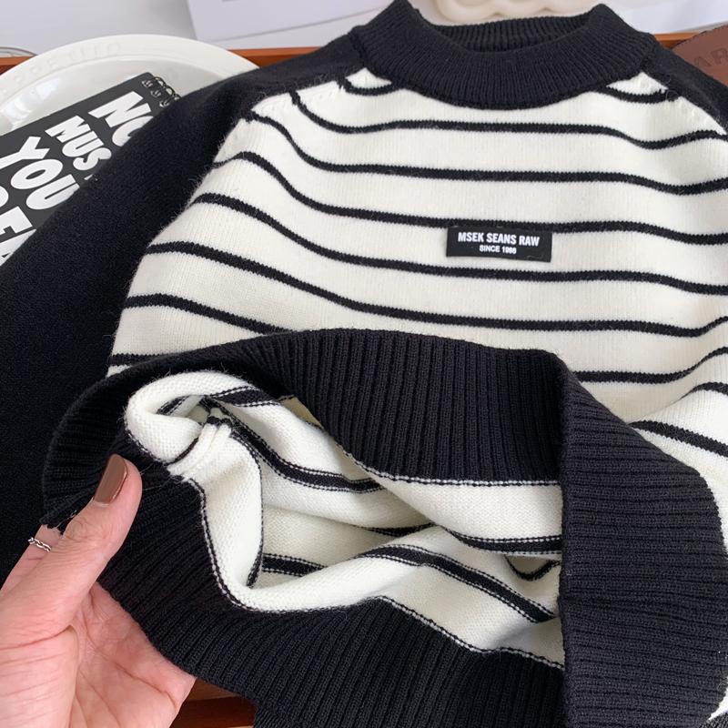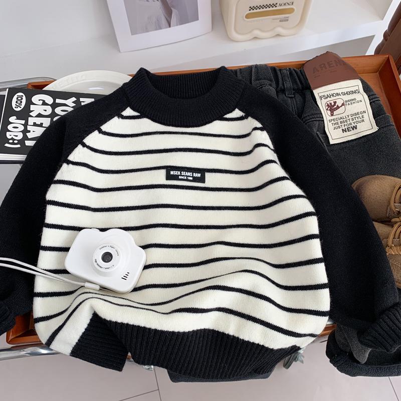柔软打底衫 男童条纹毛衣2025新款 儿童插肩洋气针织毛线衣男孩冬季