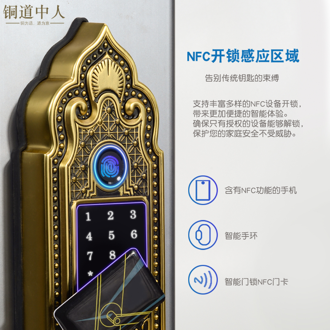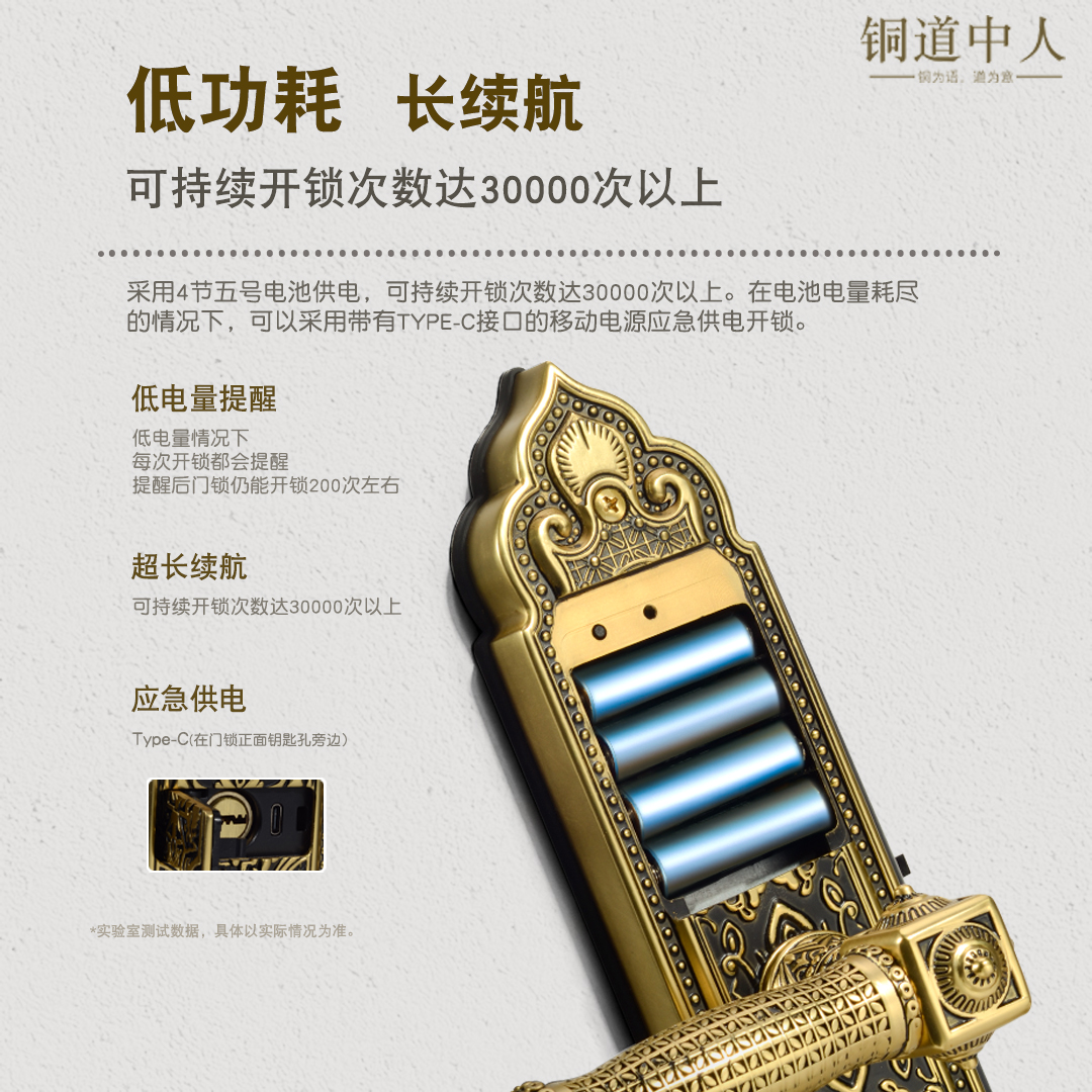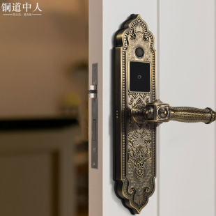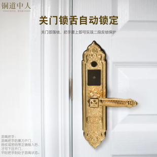 铜道中人黄铜电子智能铜锁家用室内指纹锁密码 锁房间门卧室木门锁