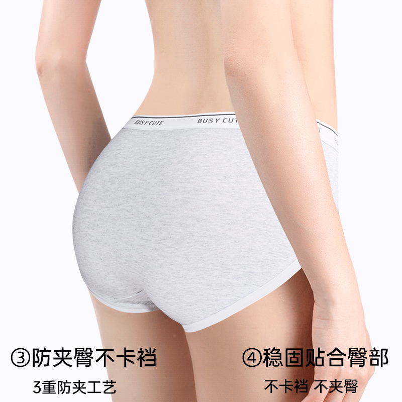 猫人纯棉平角内裤 头A 女10a级抗菌100%全棉裆透气中腰四角短裤