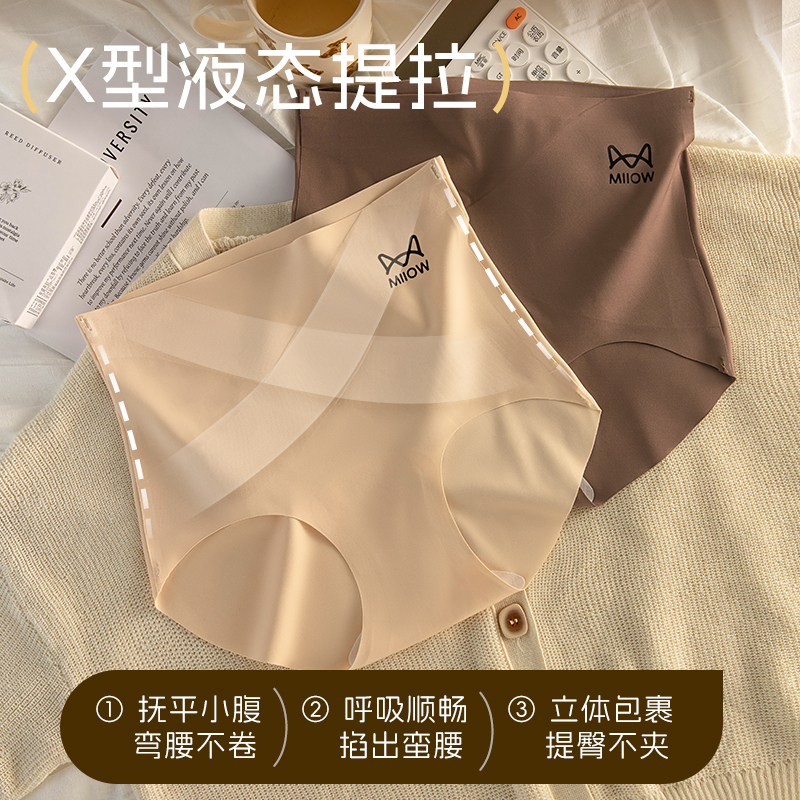 猫人高腰内裤 女收腹收小肚子产后塑形束腰提臀无痕女生加长裆短裤