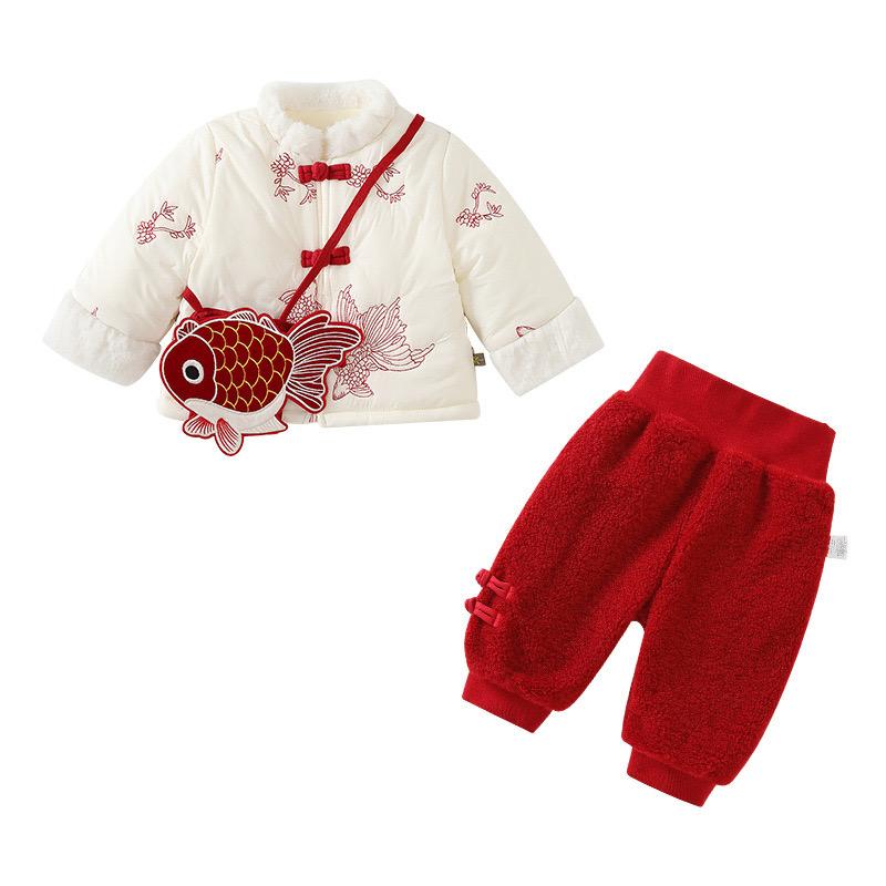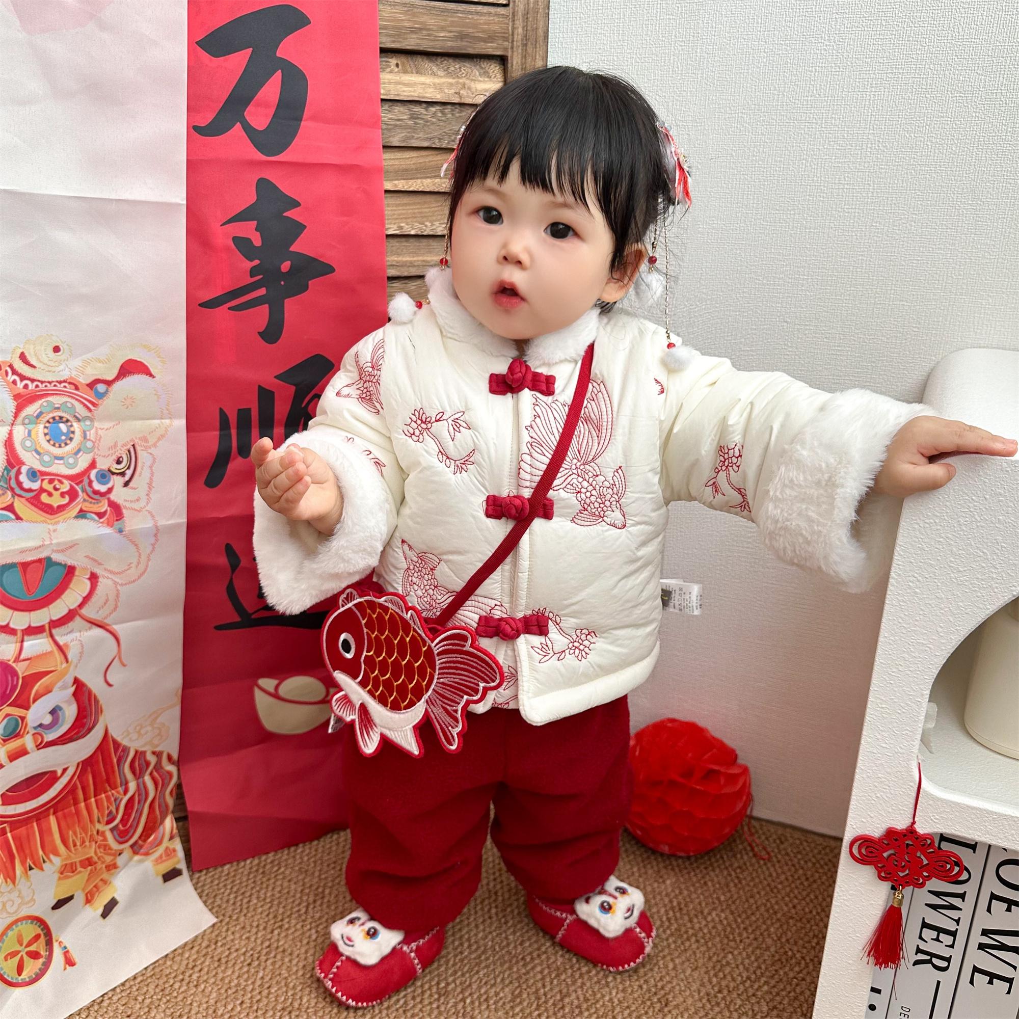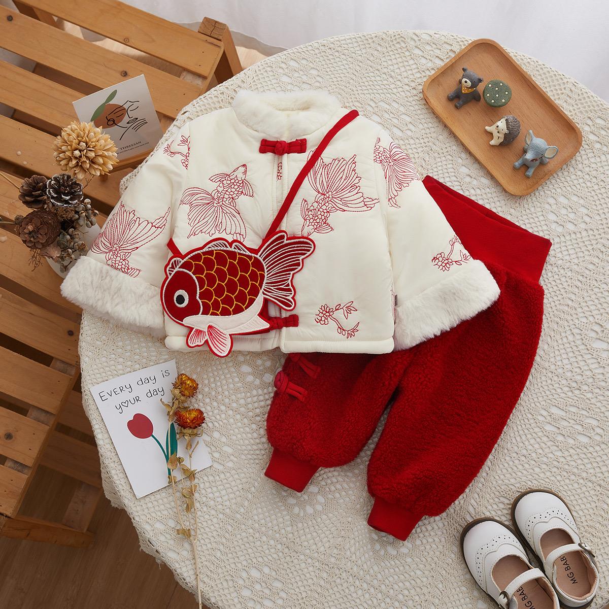 女童秋冬套装 儿童两件套女宝宝过年服中国风周岁服分体两件套 唐装