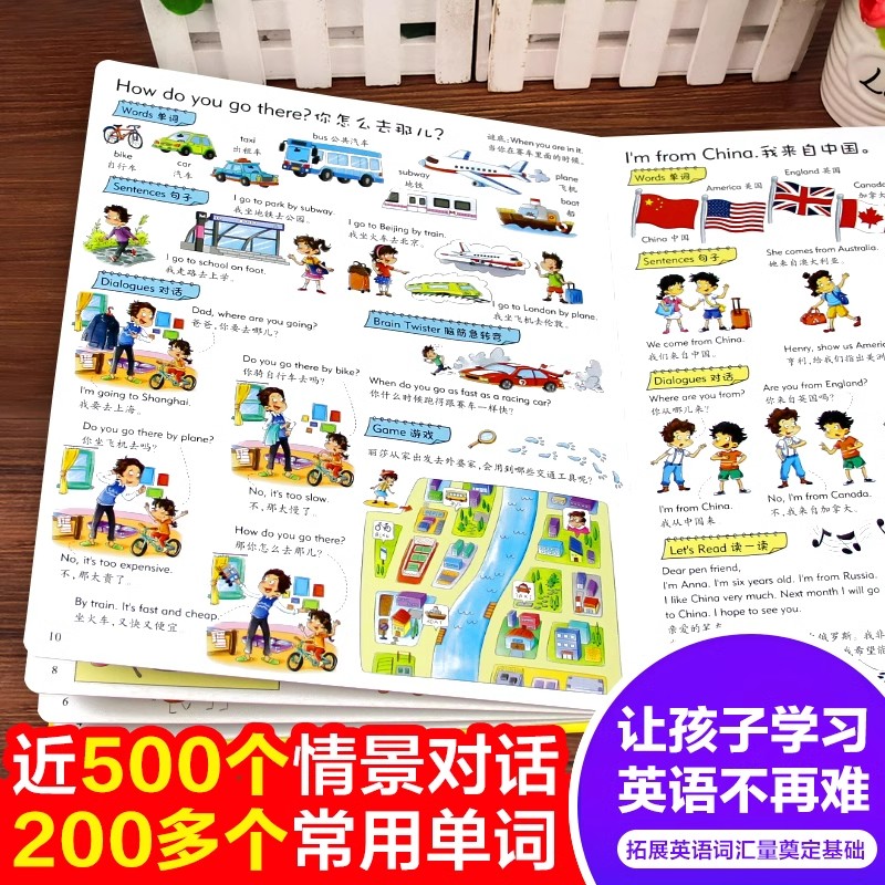 12岁幼儿英文绘本单词大书零基础教材 全4册日常生活英语1200句启蒙阅读中英双语有声伴读口语教材3 儿童情景对话英语精装