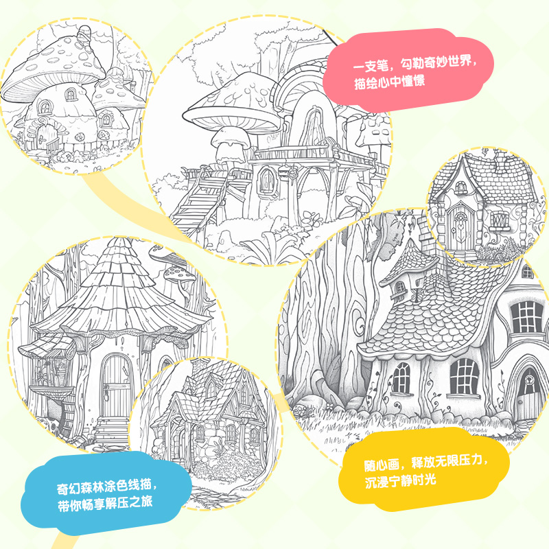 成人儿童静心解压绘本图 涂色绘本秘密花园简笔画临摹线稿 BK一支笔就解压 奇幻森林涂色线描随心画