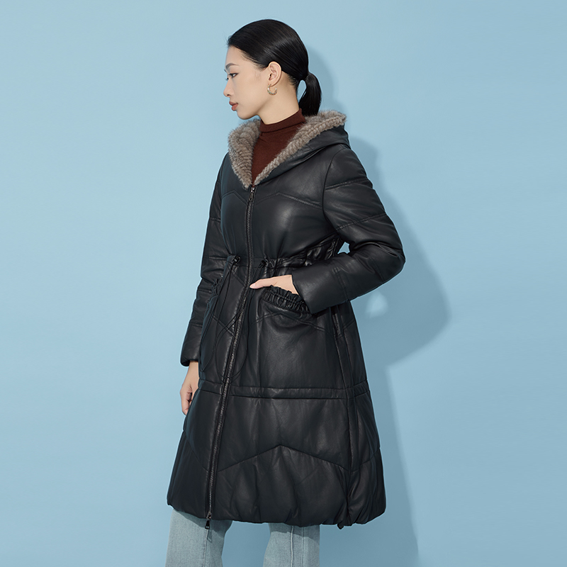 黑色水貂毛绵羊皮收腰保暖时尚 新款 轻奢气质 冬季 马天奴羽绒服女款