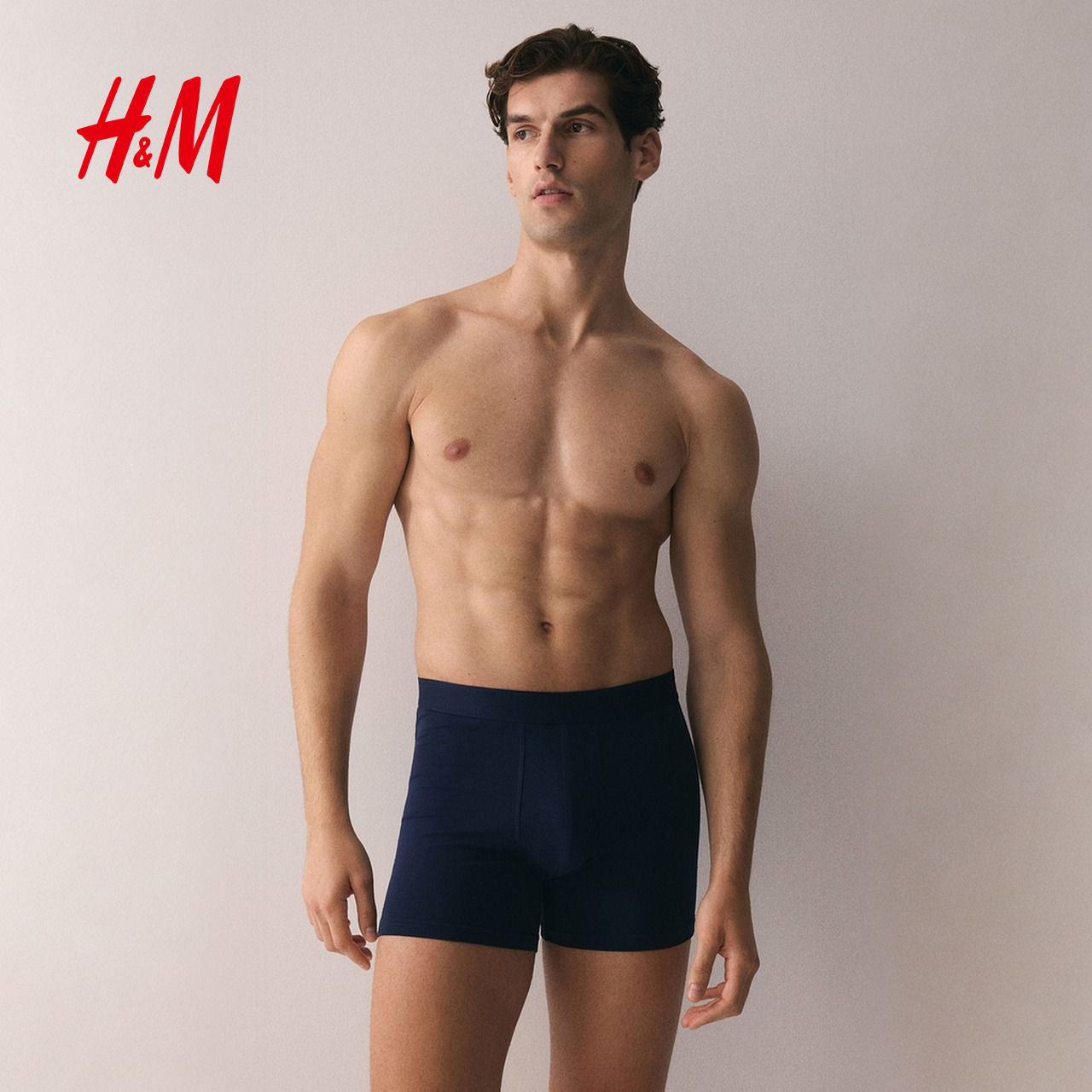 5件装 HM男士 棉质汗布舒适弹力中腰平角内裤 秋季 1070271 内裤