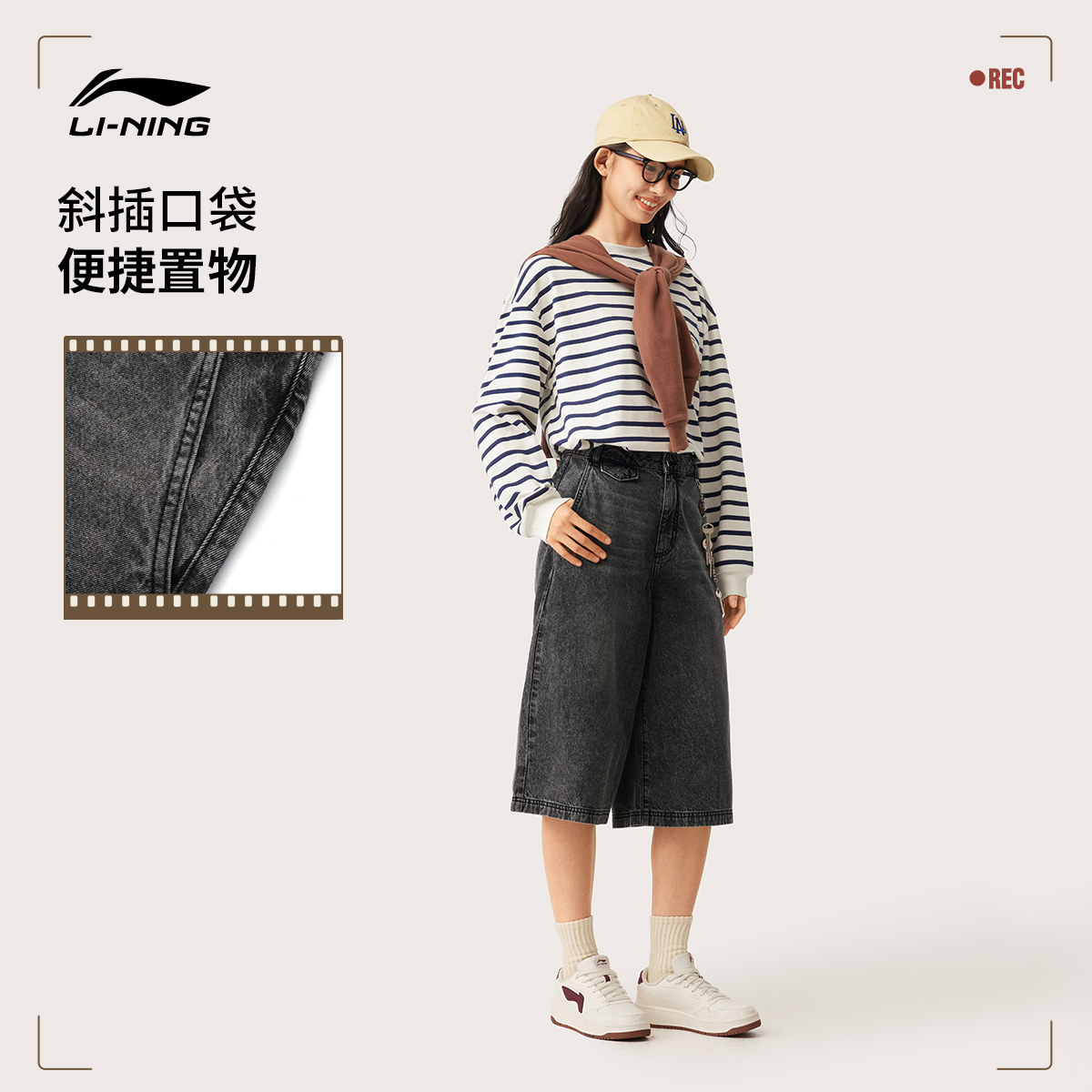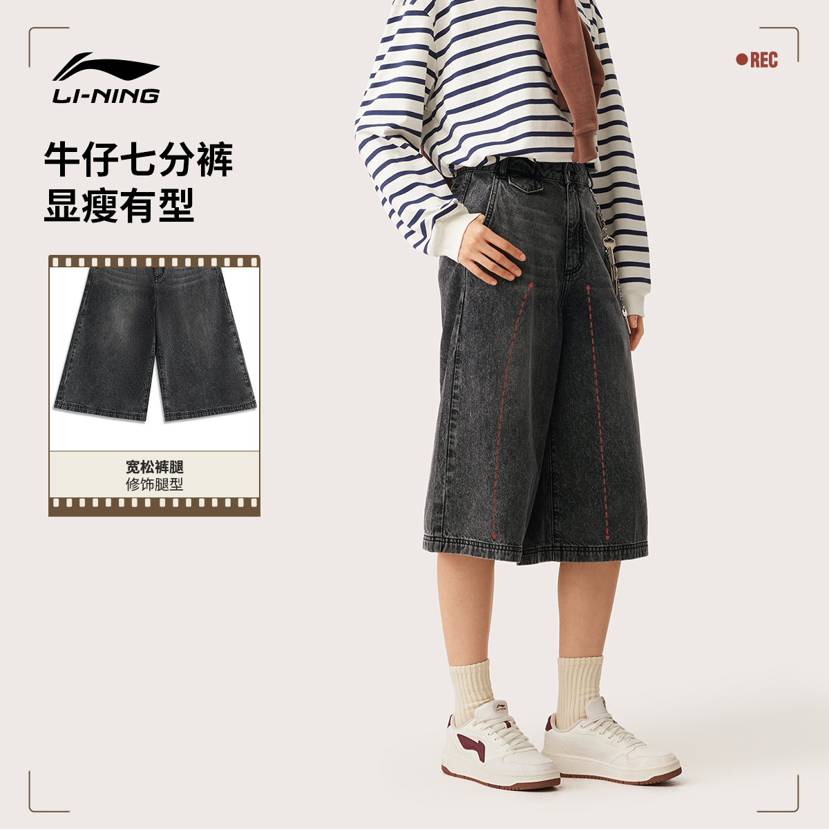 女装 牛仔短裤 裤 子休闲运动短裤 李宁七分休闲裤 梭织运动裤 女士夏季