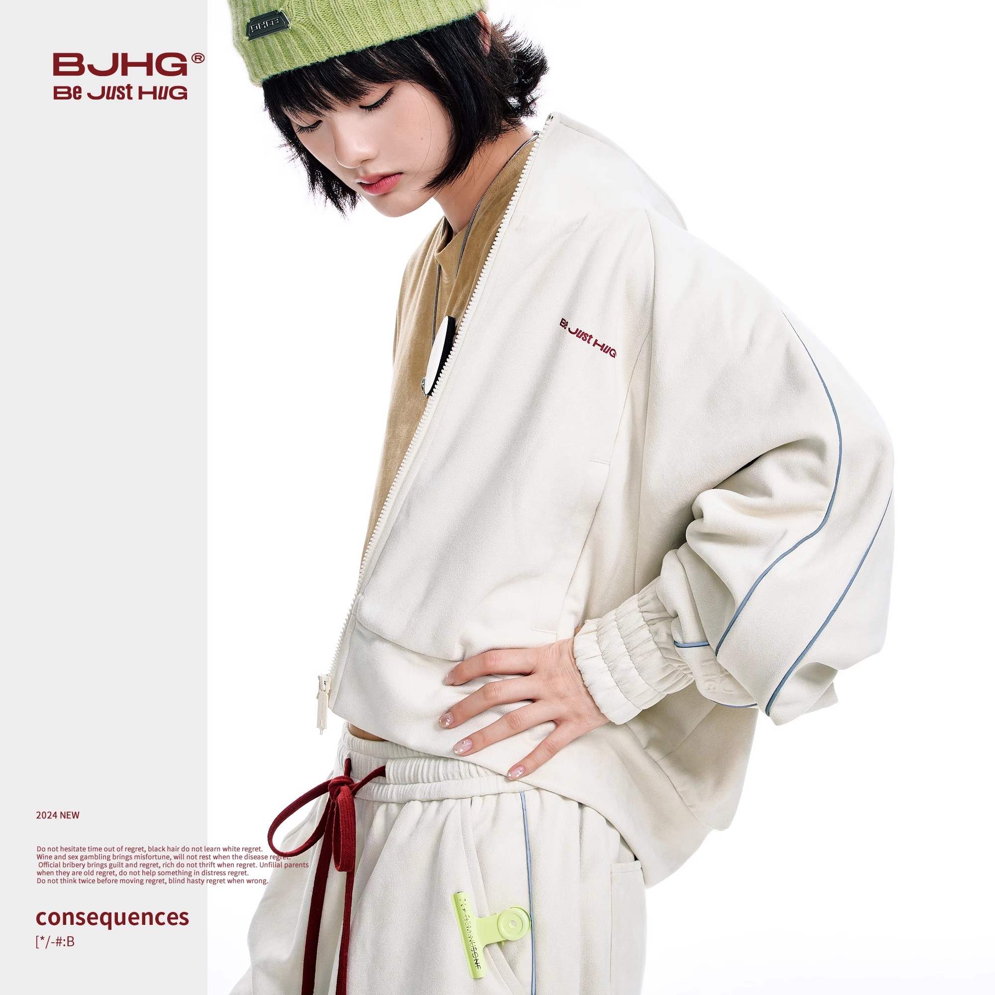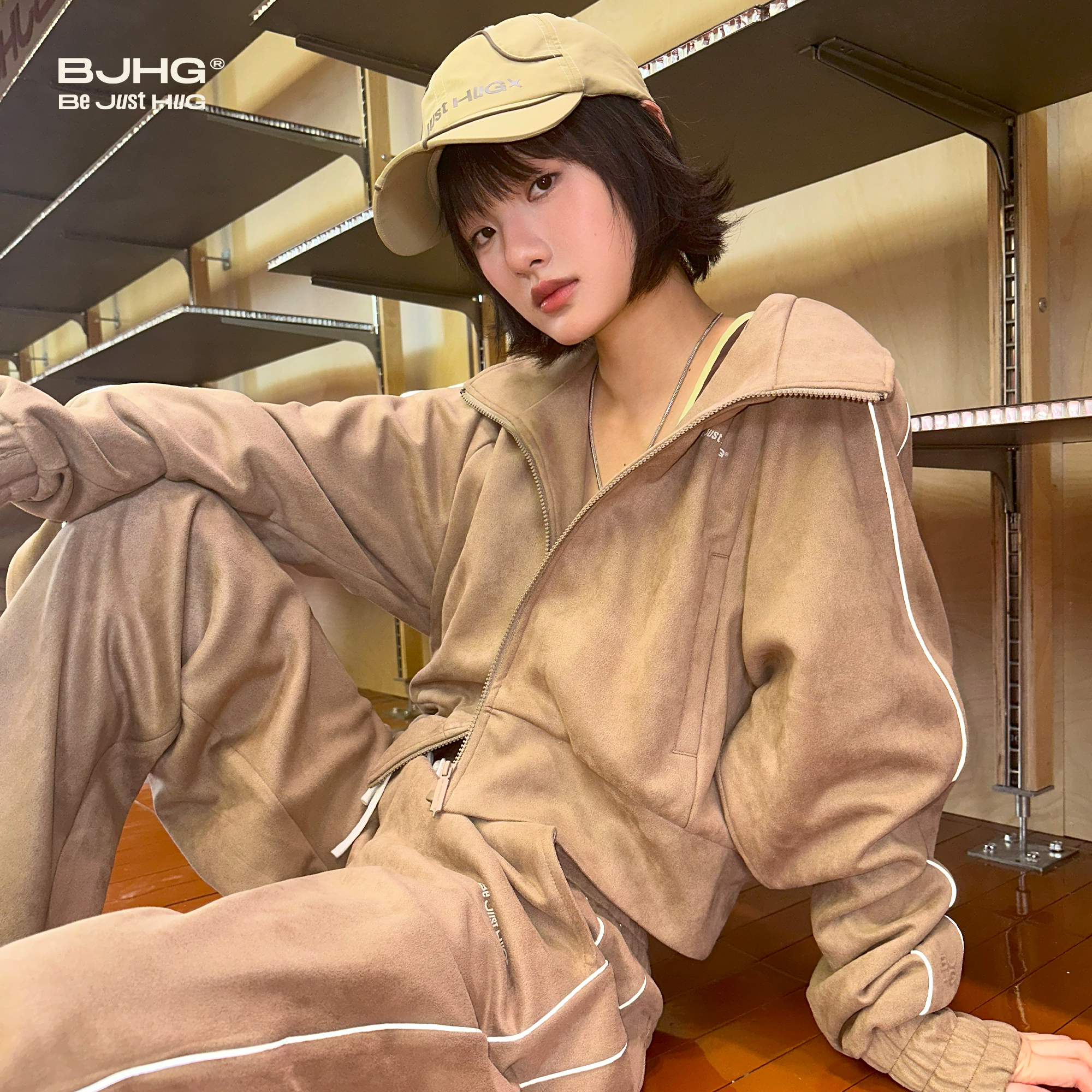 运动套装 外套休闲裤 女秋季 潮美式 麂皮绒卫衣卫裤 BJHG不计后果短款