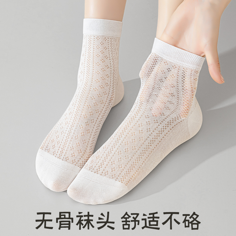 中筒袜透气芭蕾风女士短筒春秋 网眼短款 桑蚕丝袜子女短袜夏季 薄款