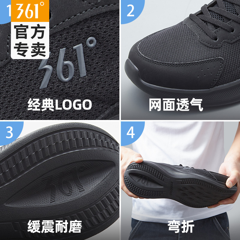 2025网面透气男鞋 新款 子男士 跑步鞋 子 361黑色运动鞋 休闲鞋 男夏季
