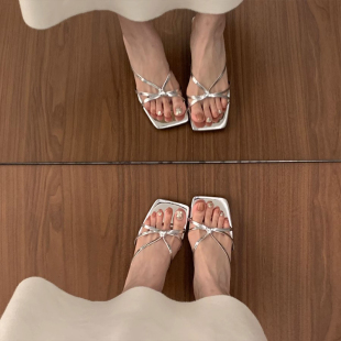 外穿小猫跟配裙子仙女风银色凉鞋 女夏季 女 高级感气质露趾拖鞋 法式