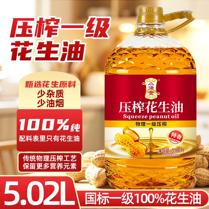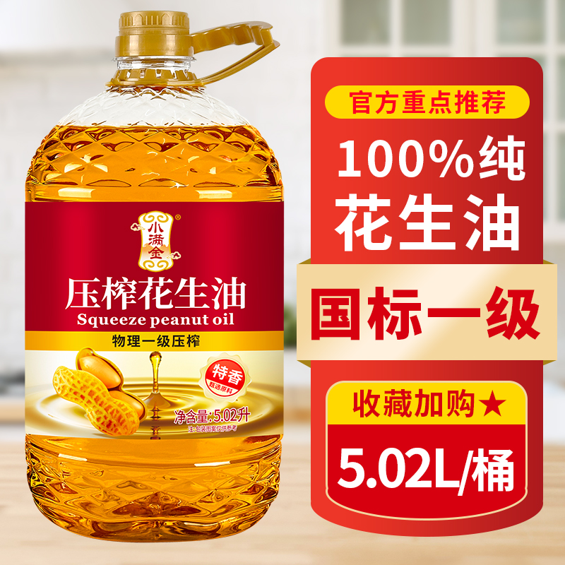 100%压榨纯花生油正宗5.02L新鲜日期食用油大桶批发 国标一级