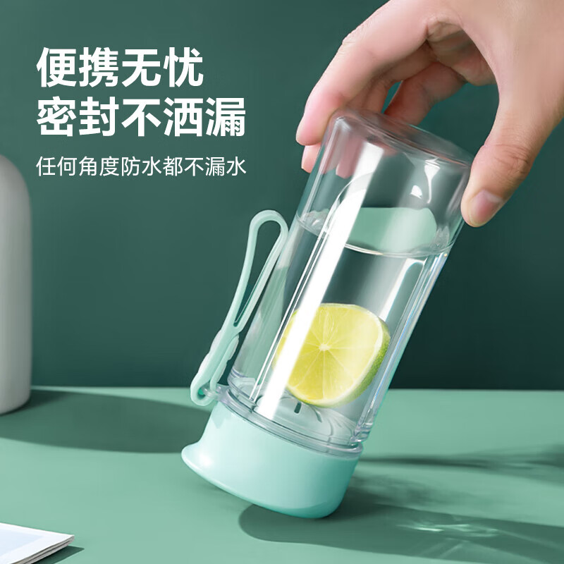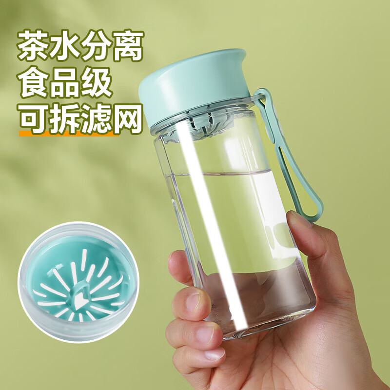 茶花运动水杯塑料杯成人健身水壶带滤网随手杯儿童便携水杯带提绳