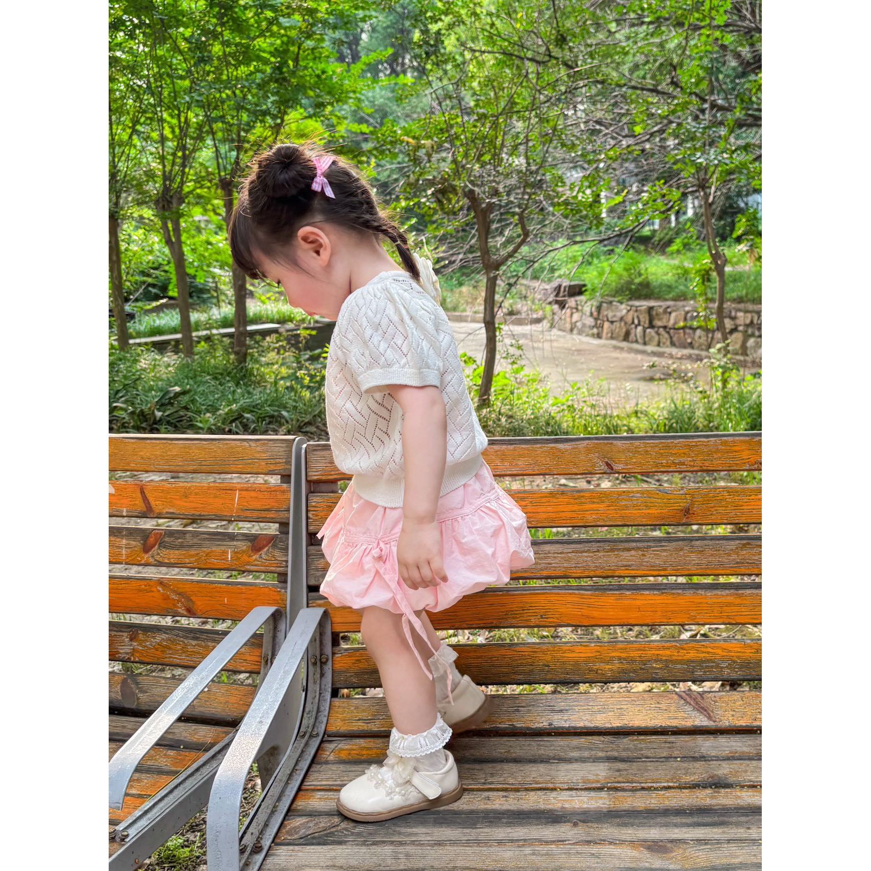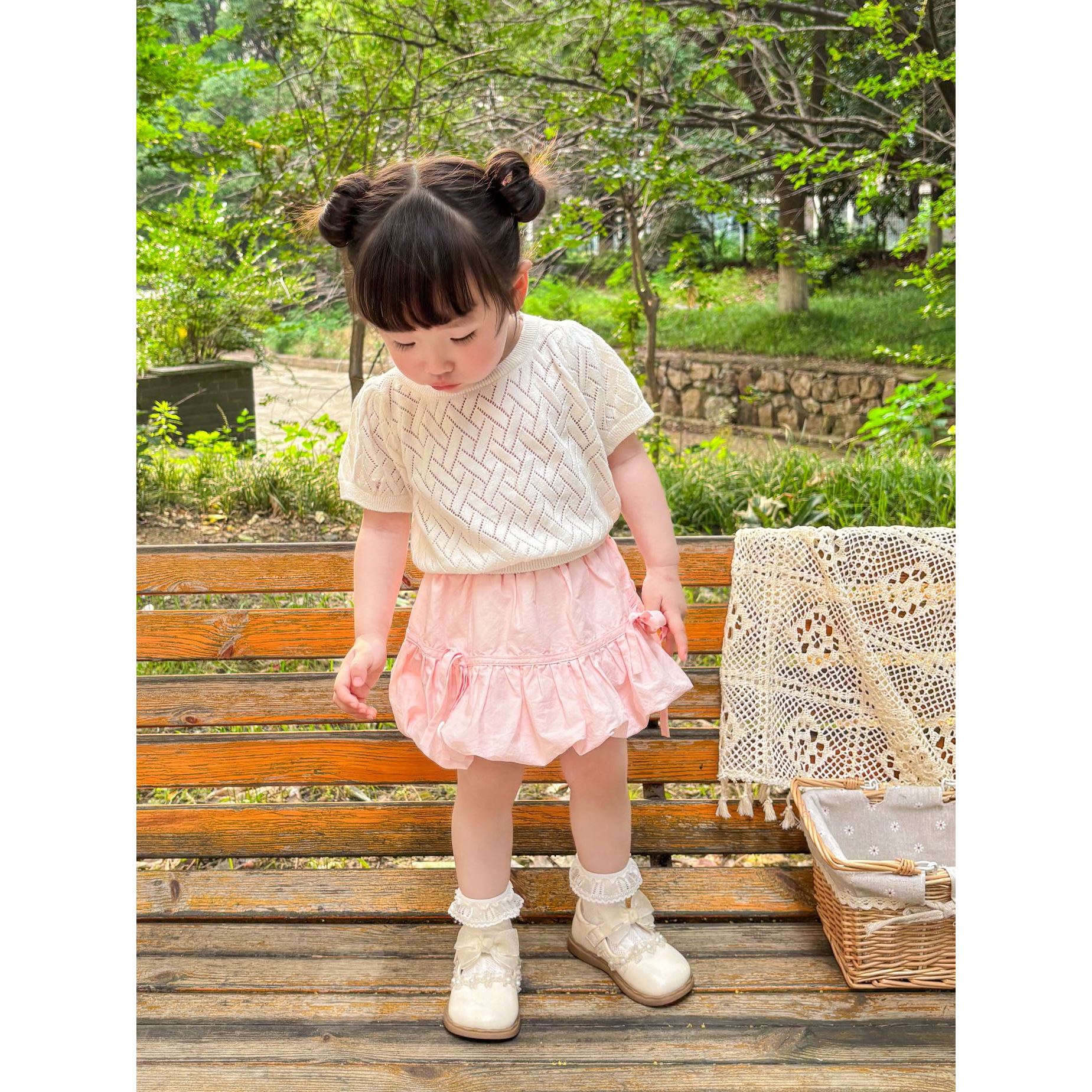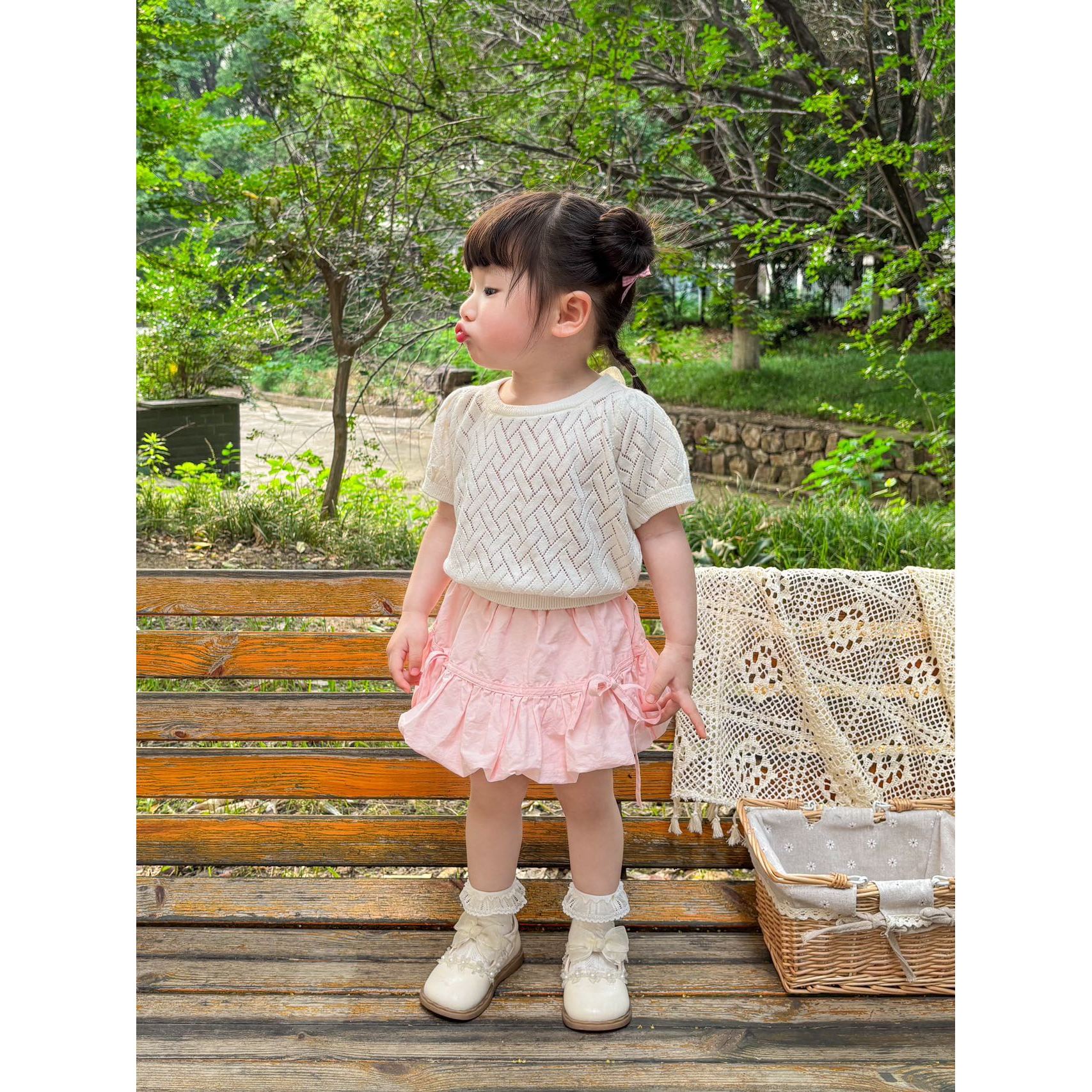 蝴蝶结镂空冰丝泡泡袖 2025夏季 超薄针织衫 女童短袖 上衣女宝宝 新款