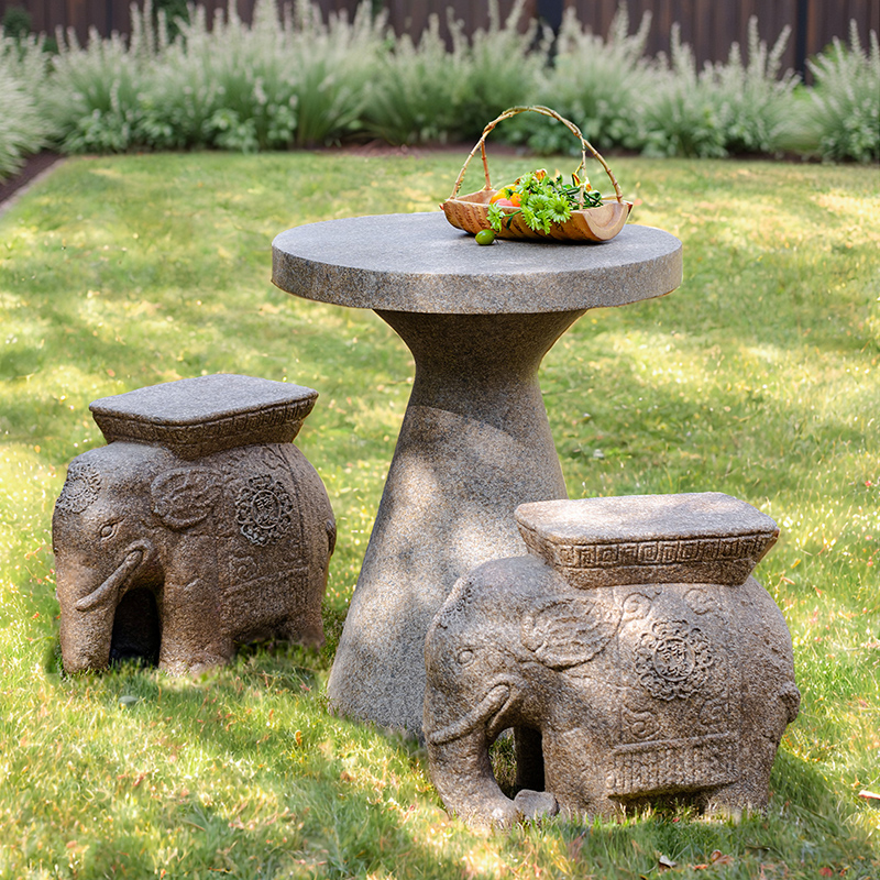 掬涵复古仿石大象石墩子庭院布置石茶桌椅户外花园造景摆件装 饰品