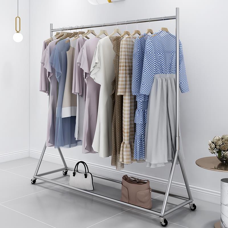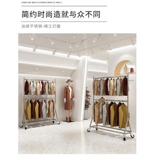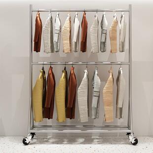 不锈钢服装 加粗货架带轮 店展示架双杆挂衣架落地侧挂架陈列架女装