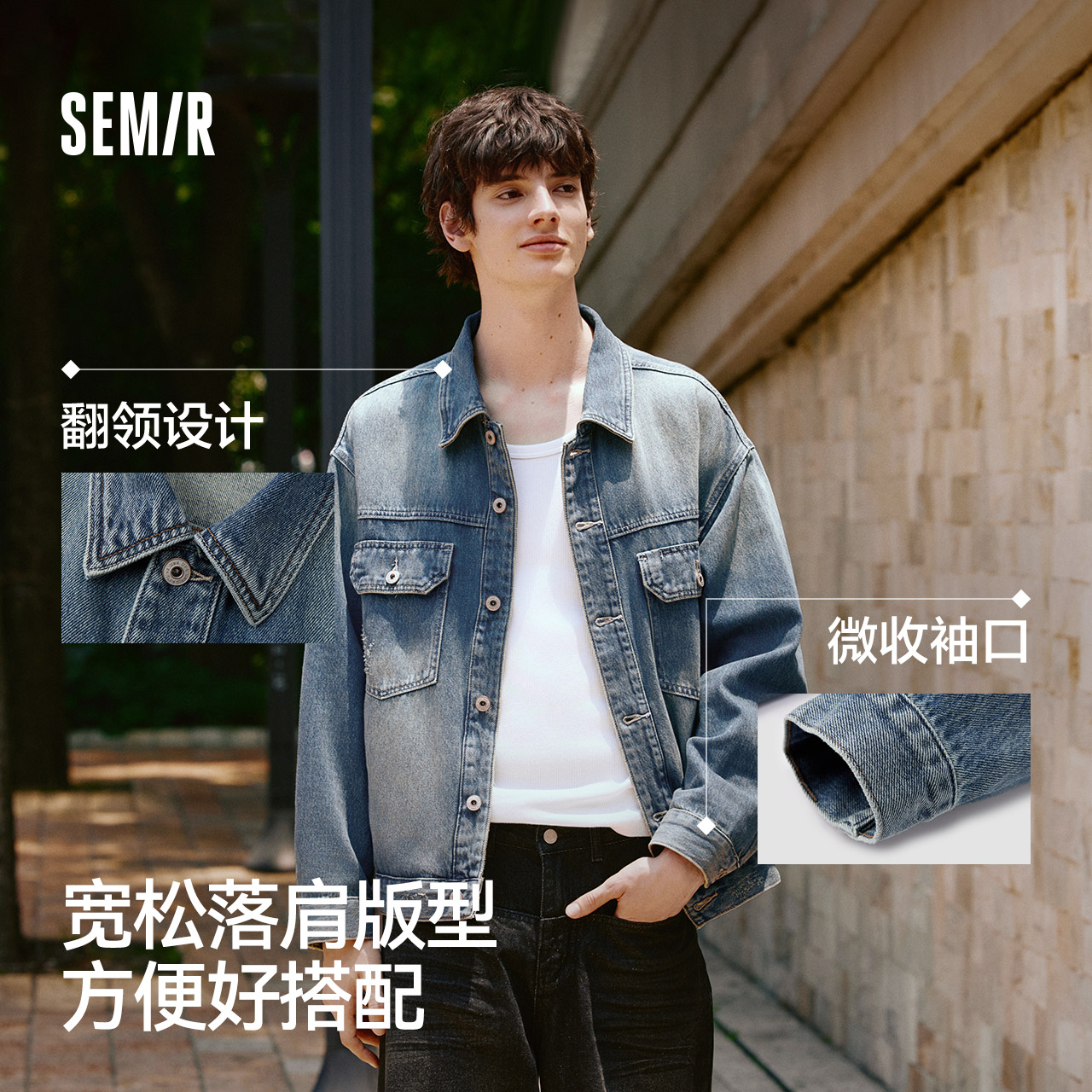 新款 森马夹克男2024秋季 复古牛仔外套宽松潮流 商场同款 森柔牛仔