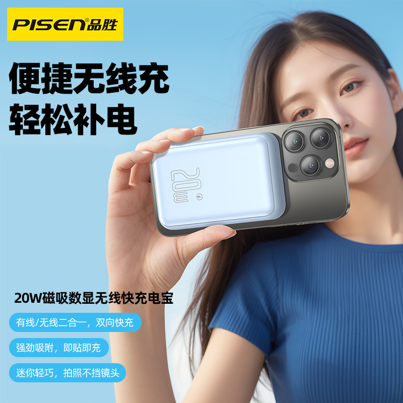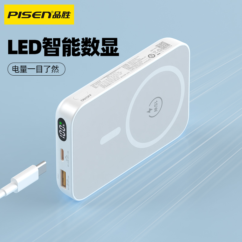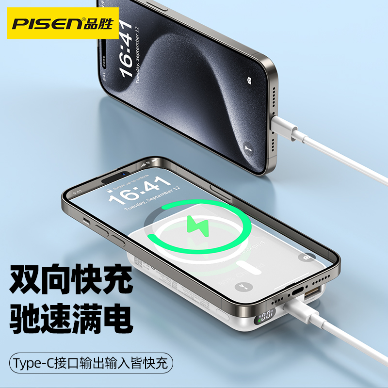 品胜磁吸款 整机双重3C认证 电芯 无线充电宝10000毫安超大容量MagSafe快充便携手机移动电源 可上飞机