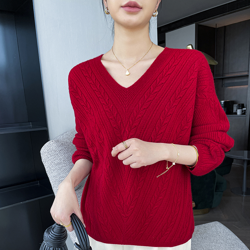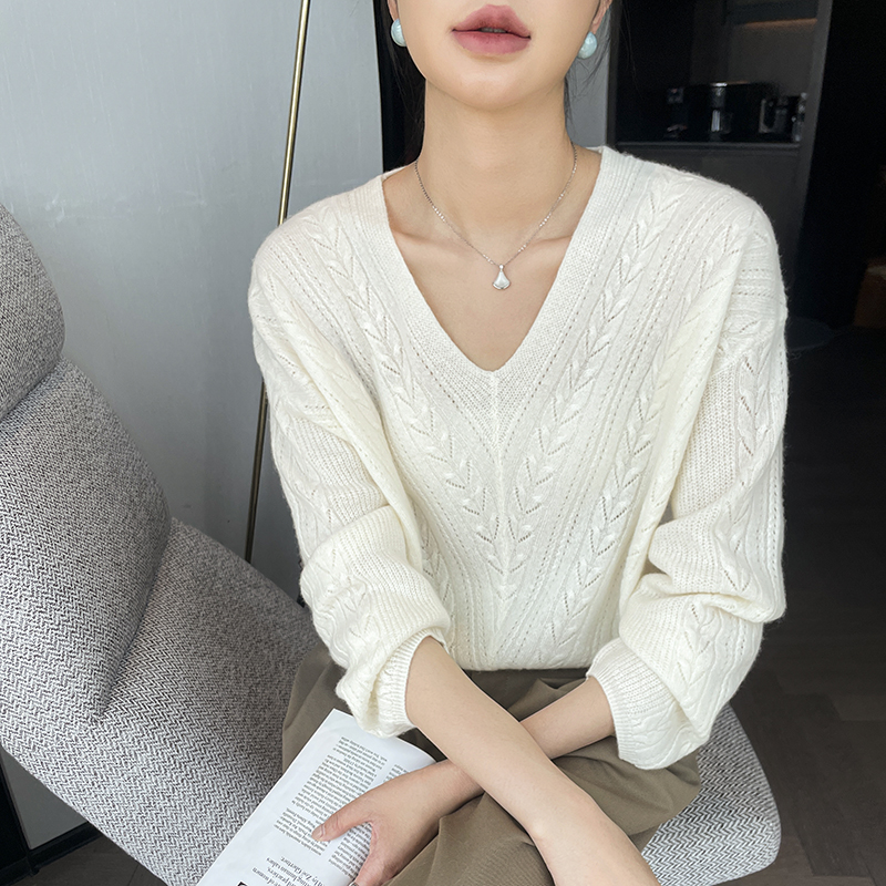 套衫 秋冬羊绒V领女针织打底慵懒长袖 热销3482 2024新款 东黎山羊绒