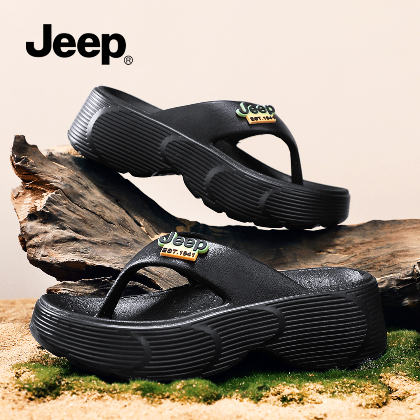 女款 JEEP拖鞋 厚底增高凉拖鞋 夹趾凉鞋 夹脚人字拖 女夏外穿2025新款