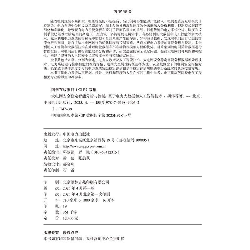 大电网安全稳定智能分析与控制——基于电力大数据和人工智能技术