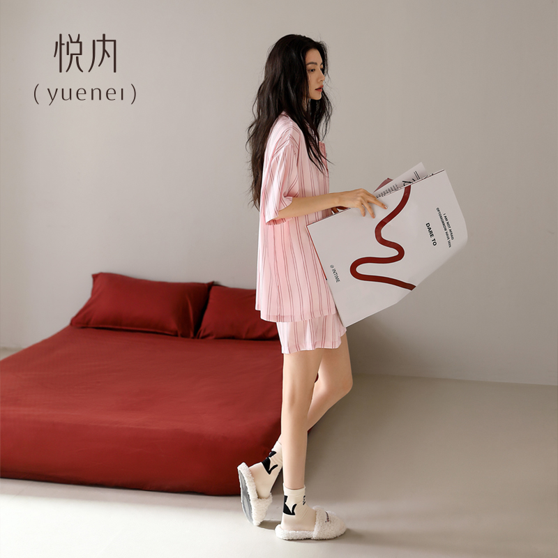 青年女士家居服套装 莫代尔棉睡衣女夏季 冰丝凉感2025新款 短袖 薄款
