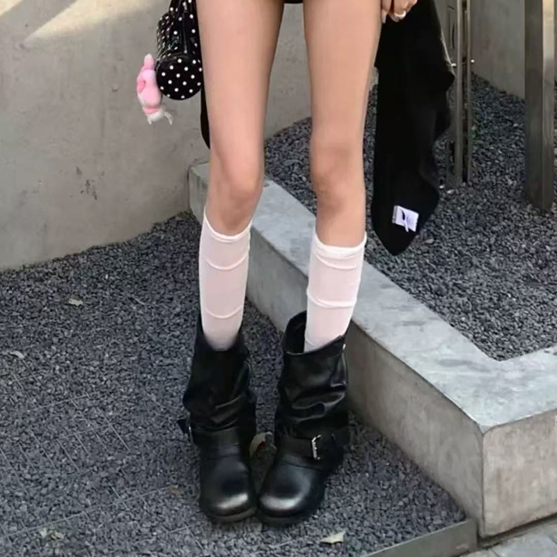 管靴法式 裤 西部牛仔靴 黑色复古堆堆靴子2025新款 巨好看短靴女夏季