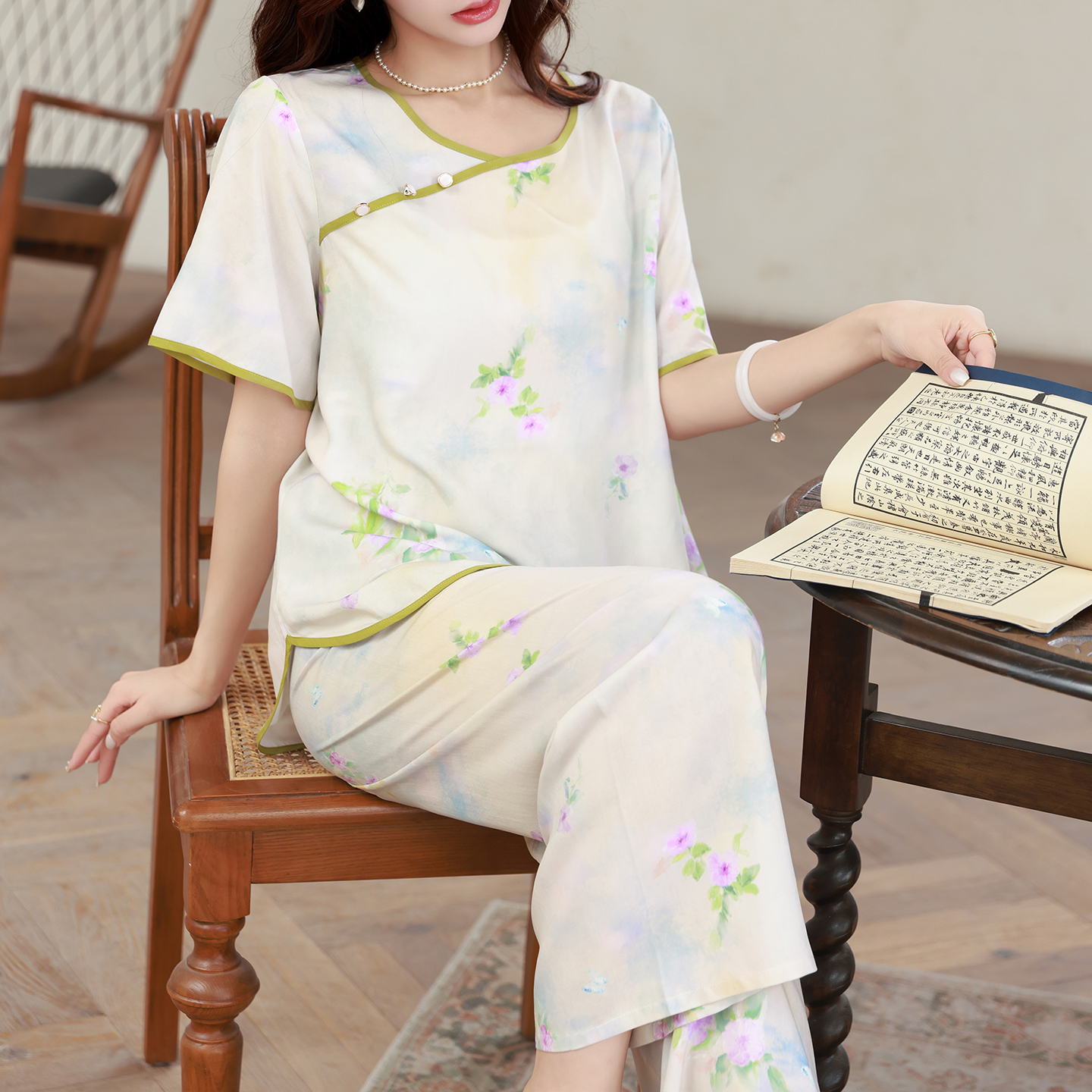 中老年人夏季 妈妈棉绸睡衣女款 套装 春秋可外穿家居服长袖 2025新款