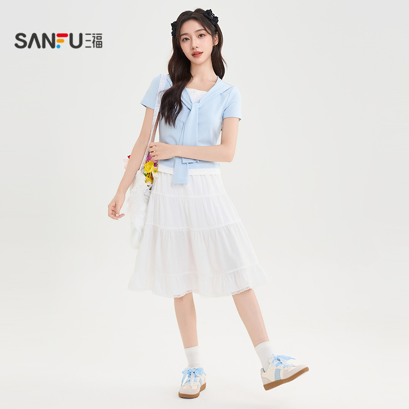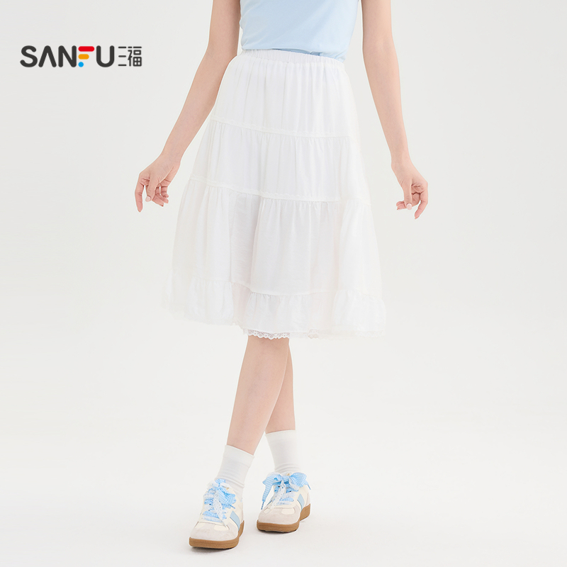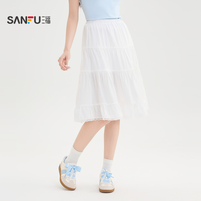 新款 2025年夏季 白色半身裙女波点蕾丝花边裙子短裙 惠品 DPLAY