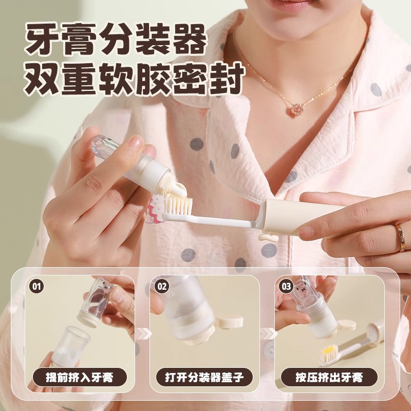 旅行折叠牙刷旅游便携式 牙膏可替换软毛成人儿童牙刷套 多功能可装