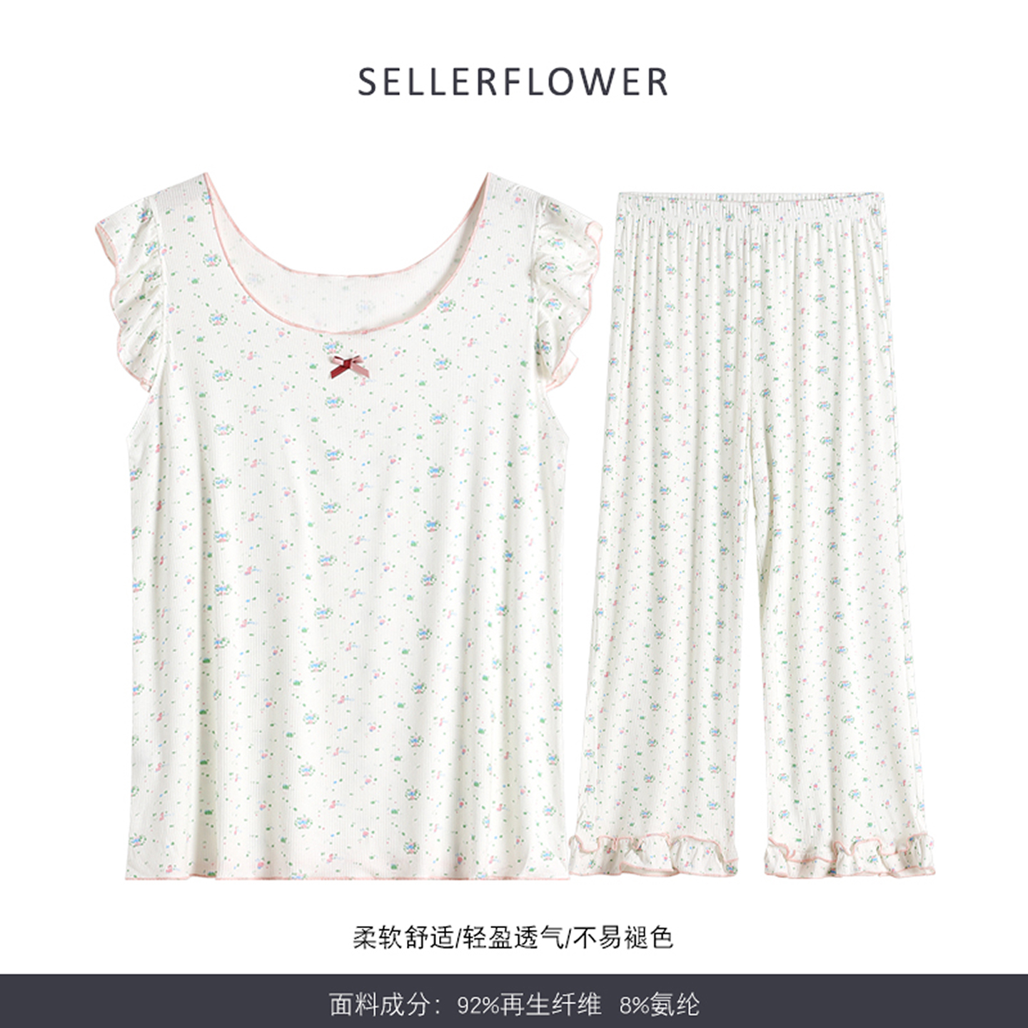 莫代尔大码 睡衣女款 家居服 碎花宽松螺纹两件套2025年新款 韩国夏季