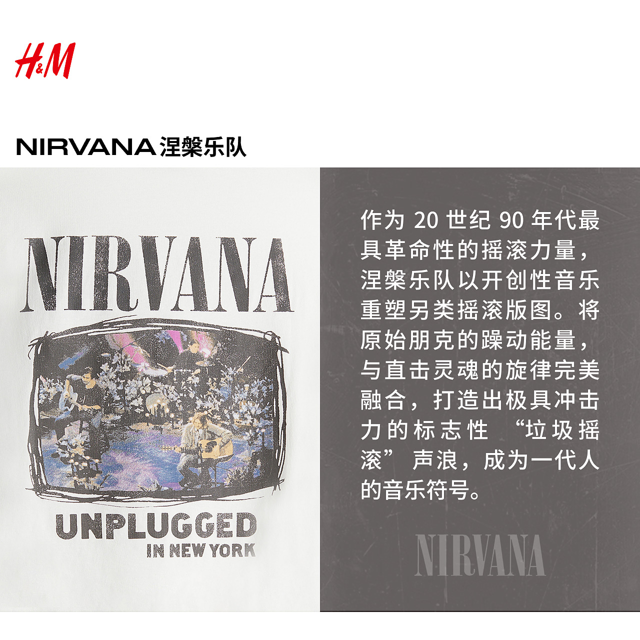 Nirvana涅槃乐队 印花圆领情侣短袖 HM男装 T恤夏季 1225609 女装