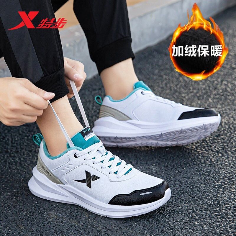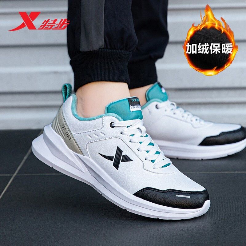 男秋季 子黑色运动鞋 跑步鞋 网面透气减震鞋 皮面防泼水男鞋 特步跑鞋