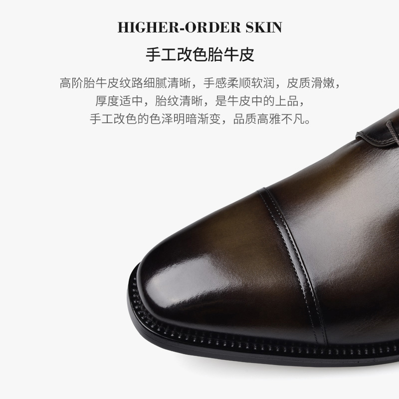 商务正装 男士 皮鞋 男真皮三接头宴会鞋 宾度男鞋 高端德比鞋 秋冬季