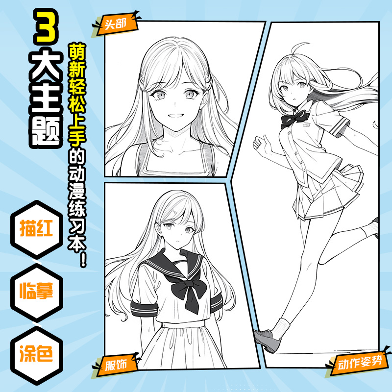 局部及动态篇 动漫人物临摹涂色线稿100例 动漫教程自学入门 基础涂色 美术教程 2024新书 绘画入门自学 动漫练习本