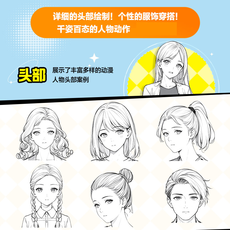 动漫人物绘画教程自学入门基础涂色绘画入门自学漫画教程书 局部及动态篇 动漫练习本 动漫人物临摹涂色线稿100例