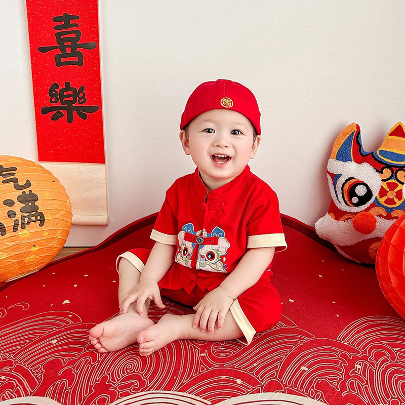 端午节衣服套装 男宝宝1一2周岁礼服夏季 婴儿百天男童国风汉服夏装