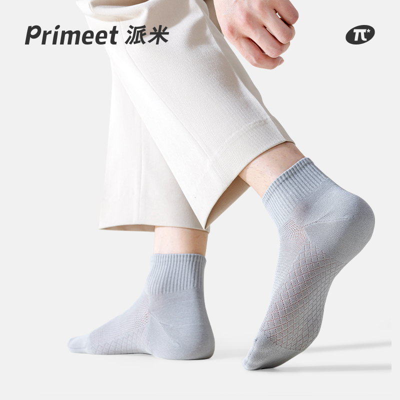 派米袜子男夏季 短筒袜棉 脚网眼短袜吸湿排汗运动白色男生浅口男士