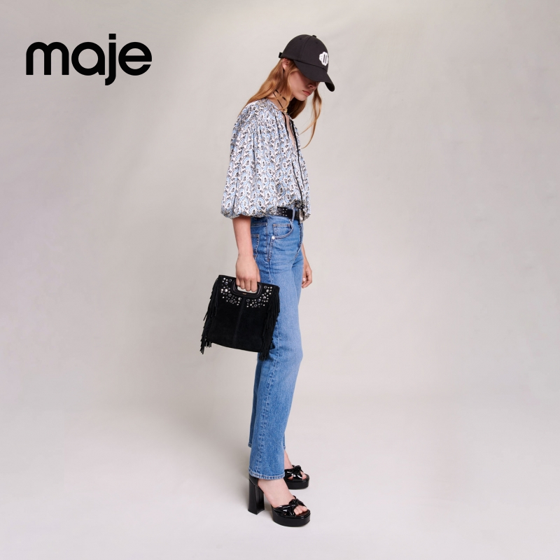 时尚 法式 气质丹宁蓝修身 显瘦直筒长裤 Maje 牛仔裤 Outlets秋冬女装