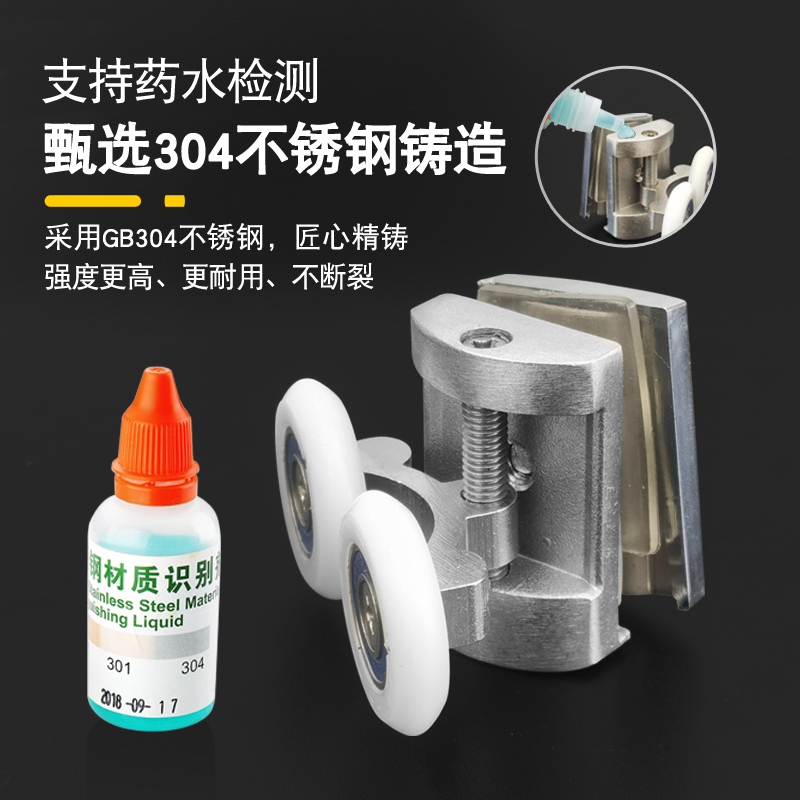 淋浴房玻璃门滑轮浴室隔断圆弧型推拉移门304不锈钢吊轮轨道滚轮
