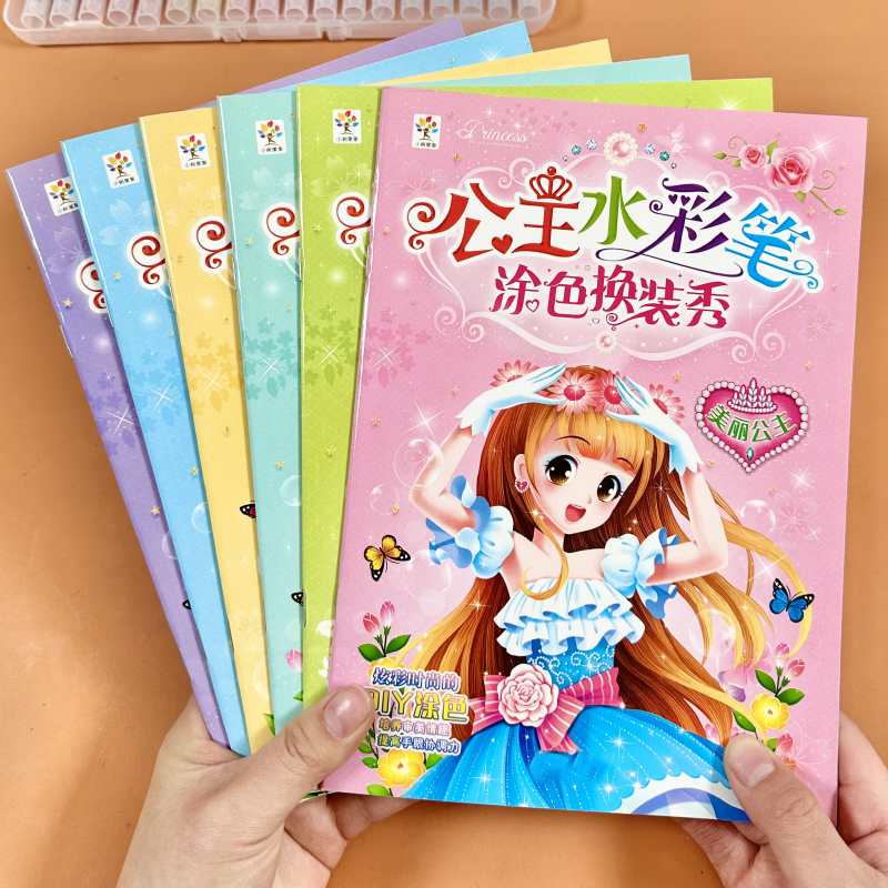 儿童公主涂色换装 秀女孩画画本绘画书水彩笔涂鸦填色绘本6册套装