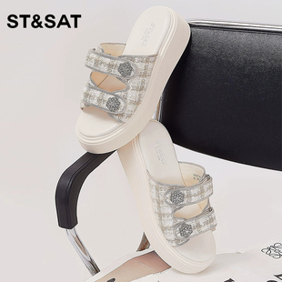 沙滩凉鞋 星期六厚底拖鞋 小香风松糕增高一字拖鞋 时尚 女夏外穿新款