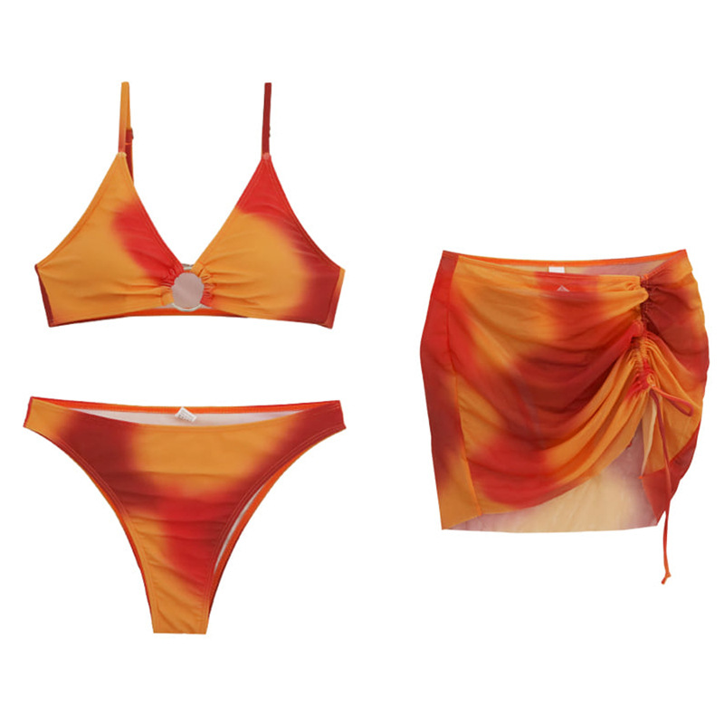 omom游泳衣新款 比基尼三件套 渲染风性感露背大小胸聚拢分体裙式