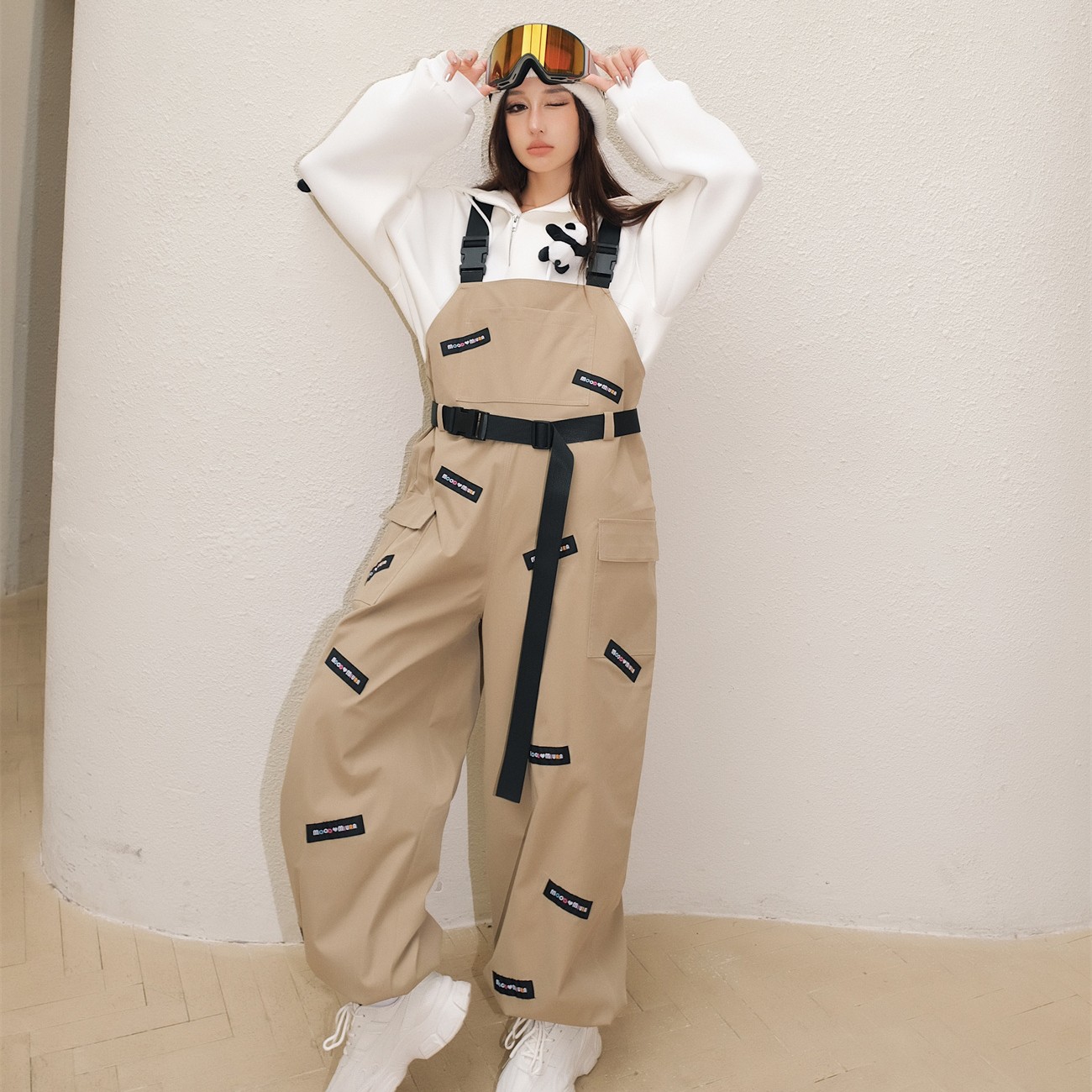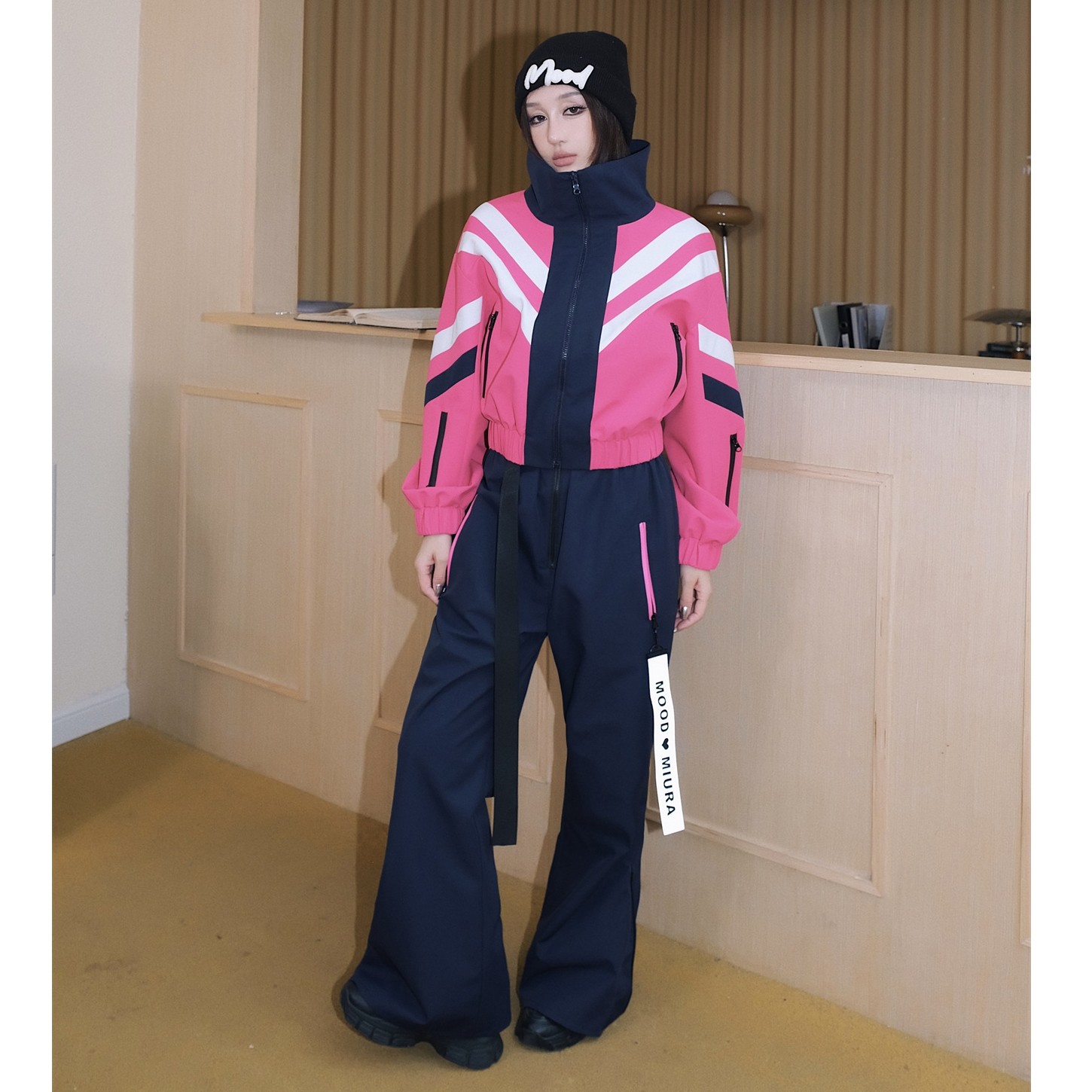 滑雪服套装 MOOD 新白色拉链披肩连帽外套喇叭裤 MIURA