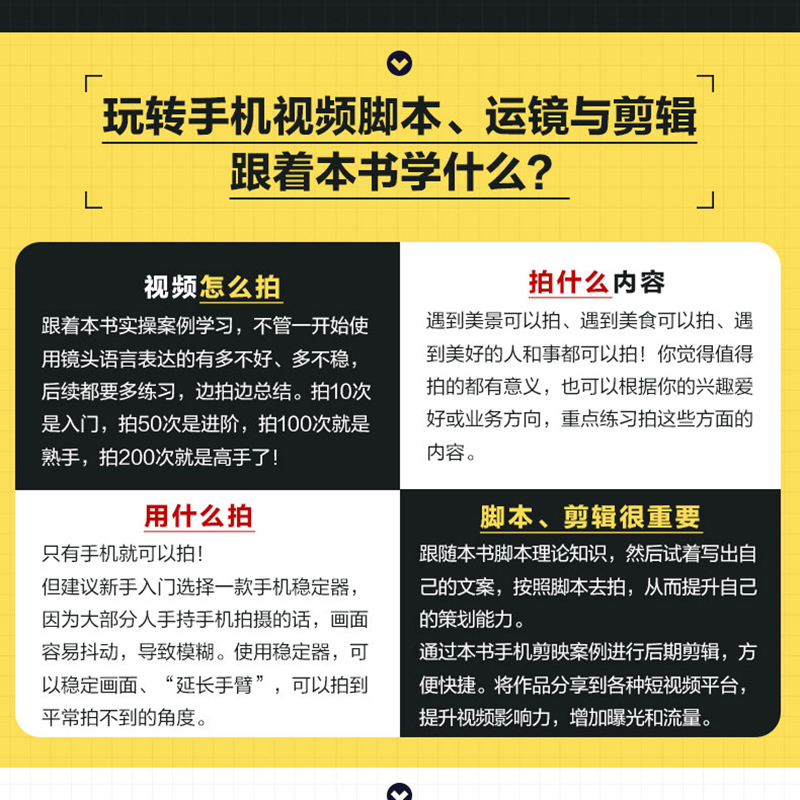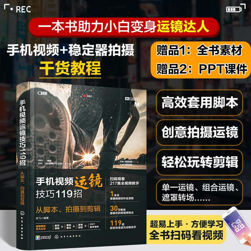 新手小白初学者手机视频干货教程人物拍摄美食控店抖音小红书淘宝店铺视频运营书籍 从脚本拍摄到剪辑 正版 手机视频运镜技巧119招