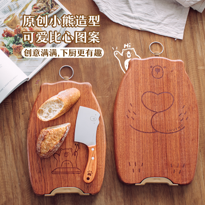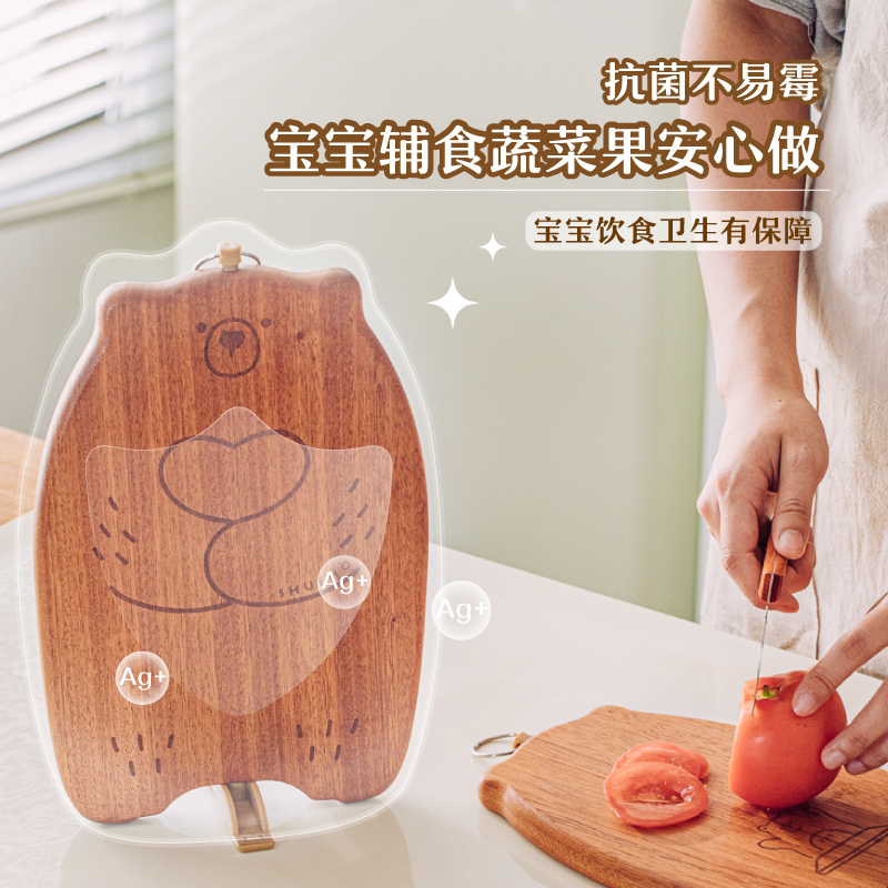 树可可小熊迷你菜板家用厨房婴儿辅食专用乌檀木实木水果小砧板