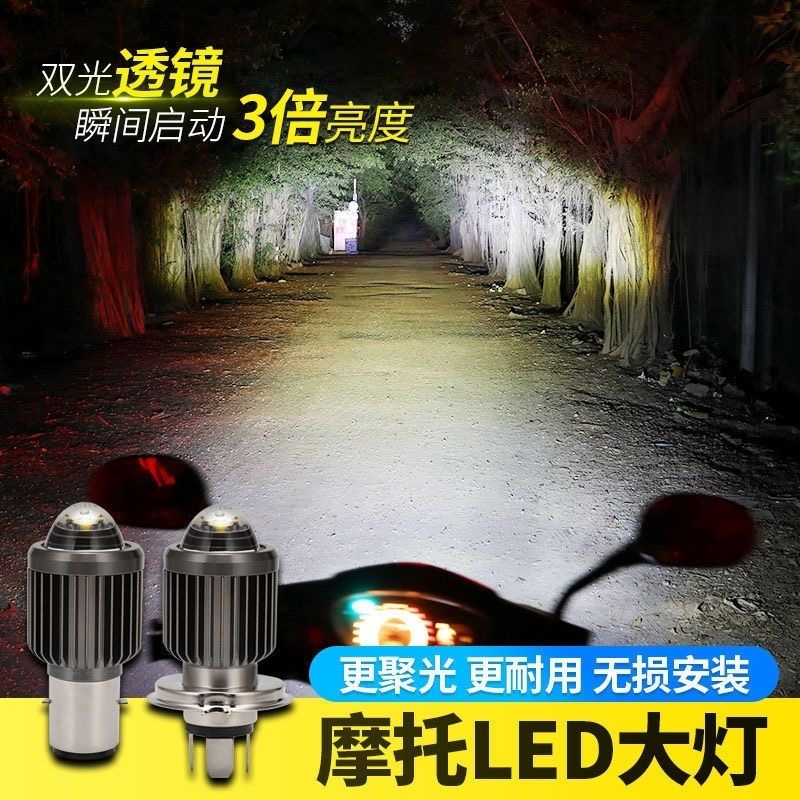 10H踏板摩托车LED大灯前光H4三爪灯泡 HJ125T 适用豪爵 铃木宇钻E