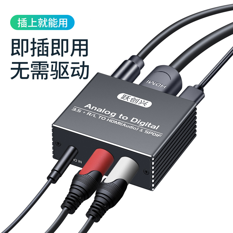 模拟转数字音频电脑投影仪转光纤K歌转hdmi接音箱响 hdmi音频融合转换器 跃创兴 3.5mm音频红白莲花RCA转光纤