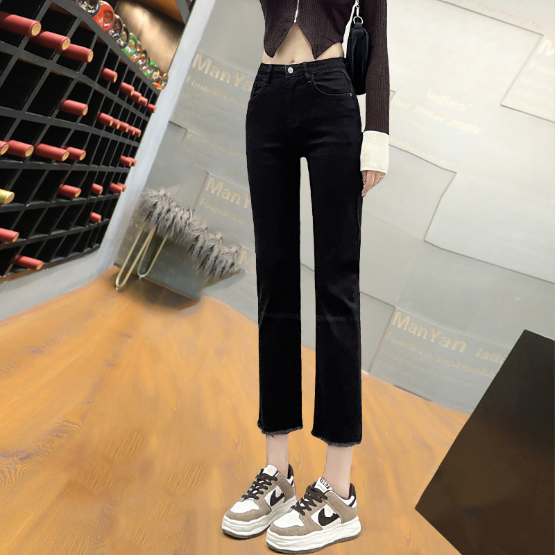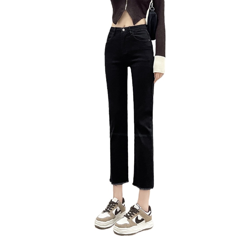 女士牛仔裤 黑色显瘦喇叭牛仔裤 2025年秋季 复古修身 新款 热风微喇裤