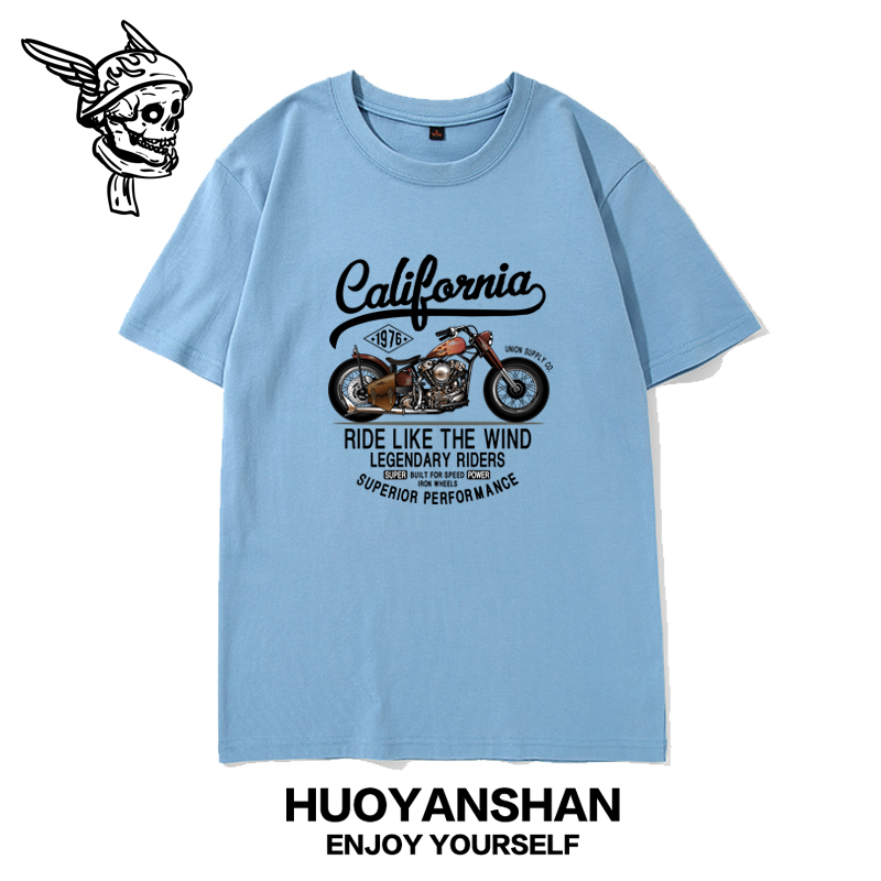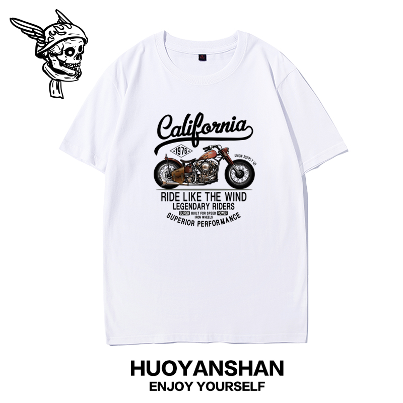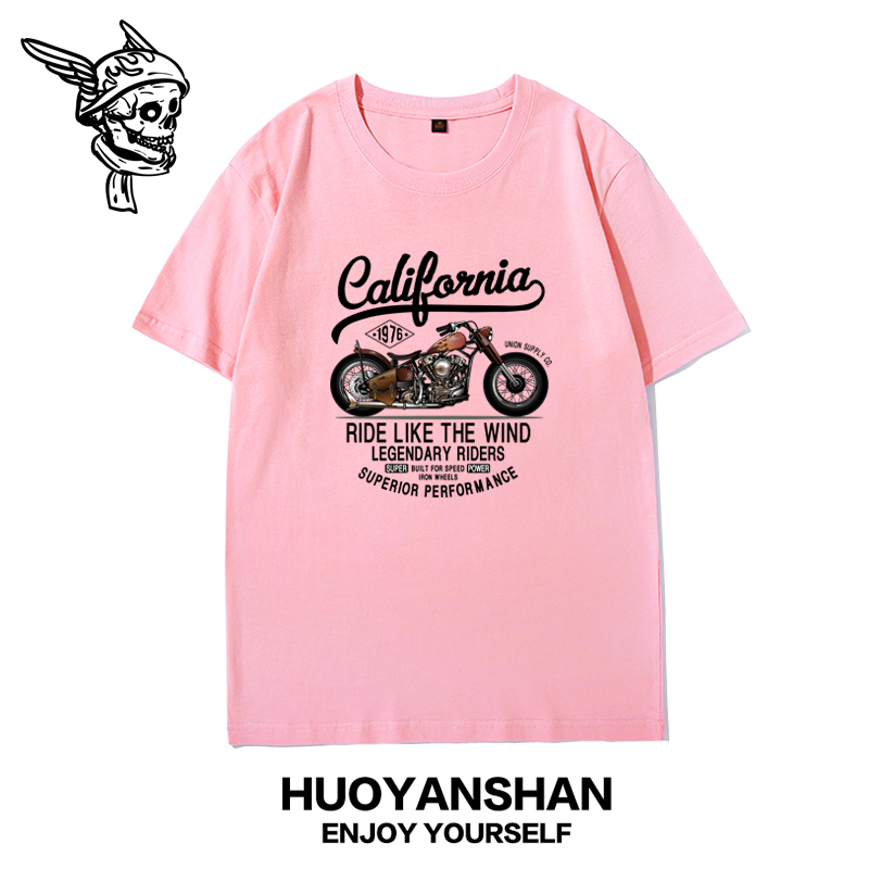 纯棉宽松大码 复古硬汉阿美咔叽半袖 体恤 T恤男美式 摩托车机车短袖